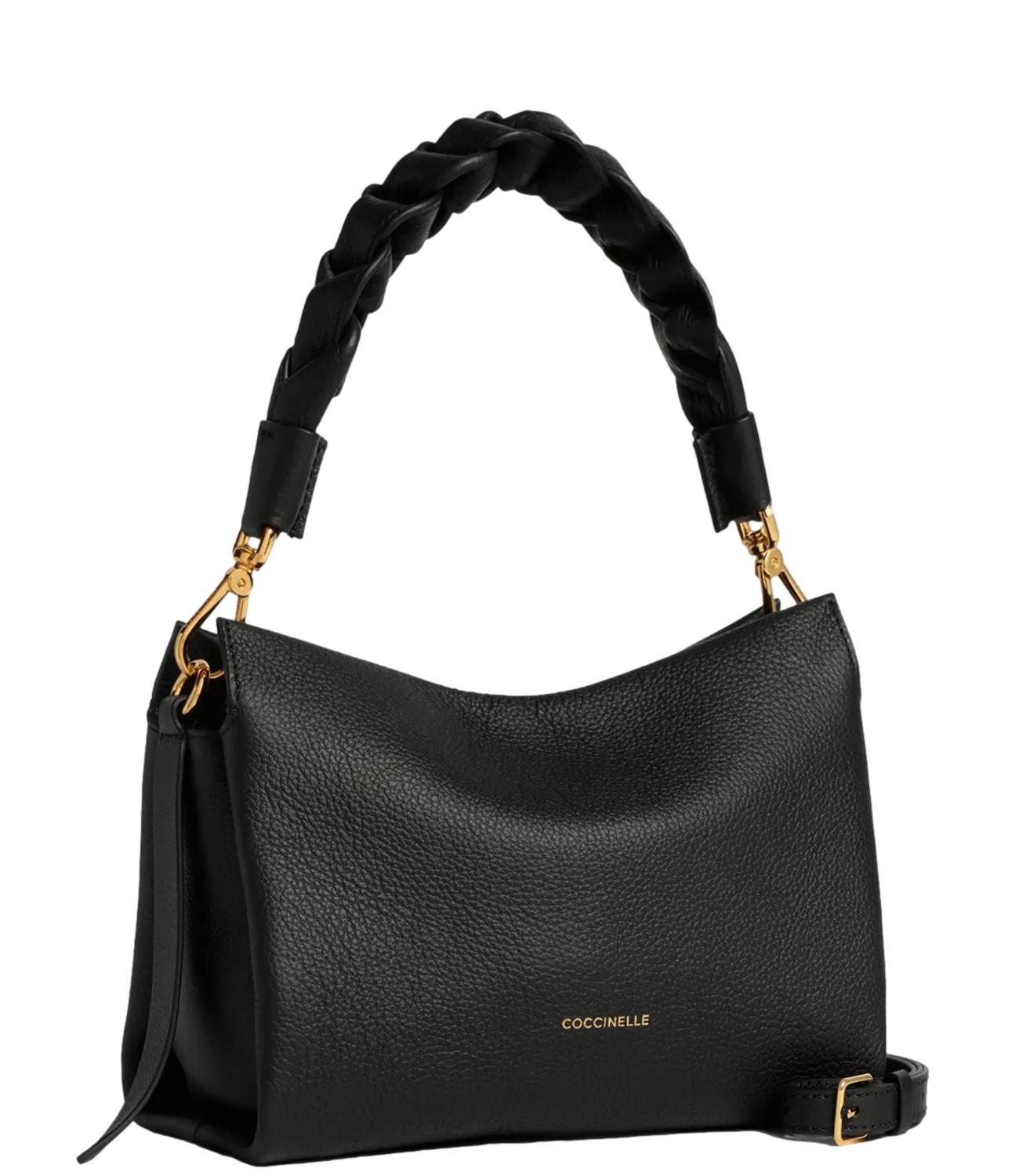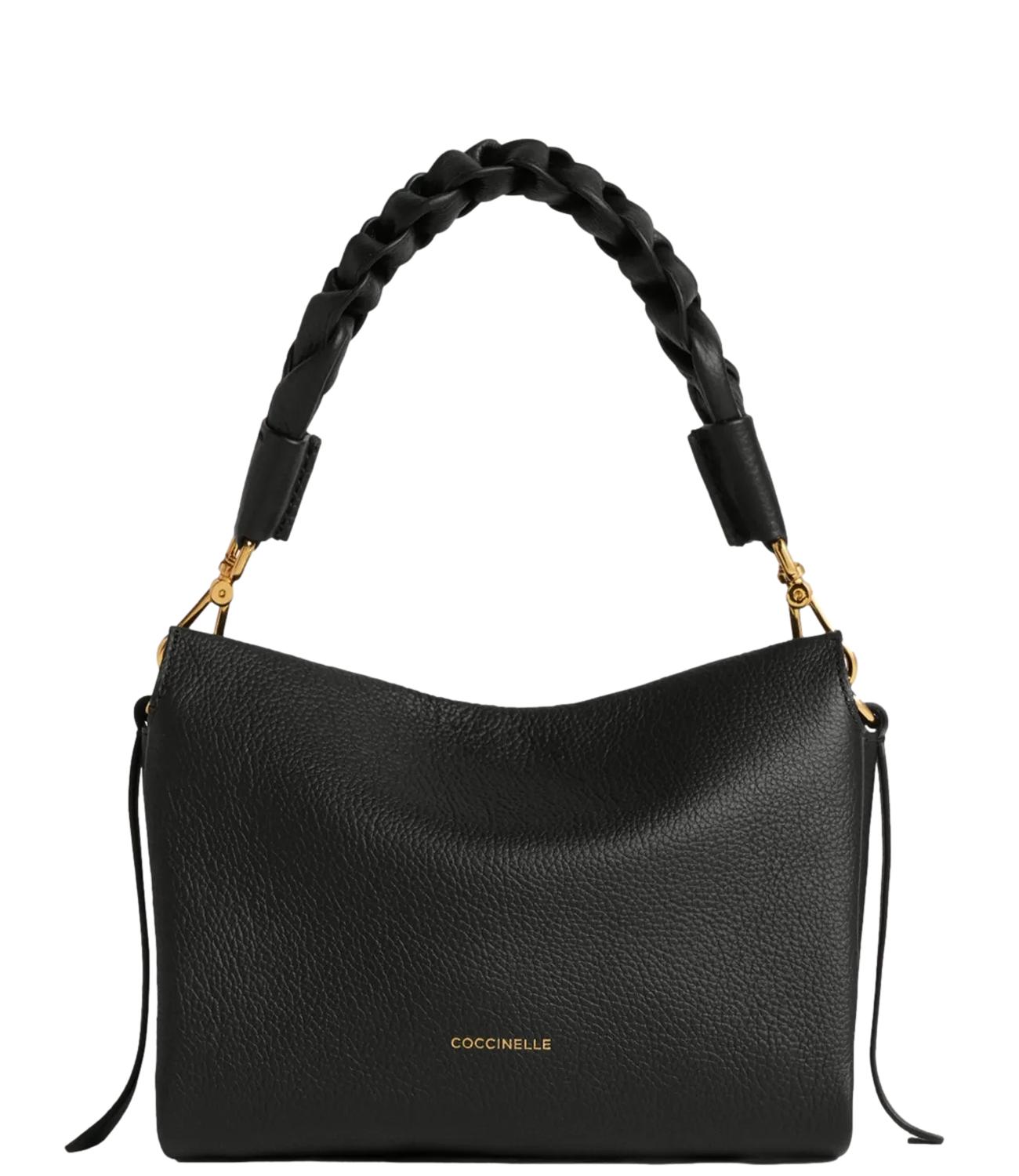 Borsa con tracolla Coccinelle linea Boheme realizzata in pelle double grain nella tonalità del nero.