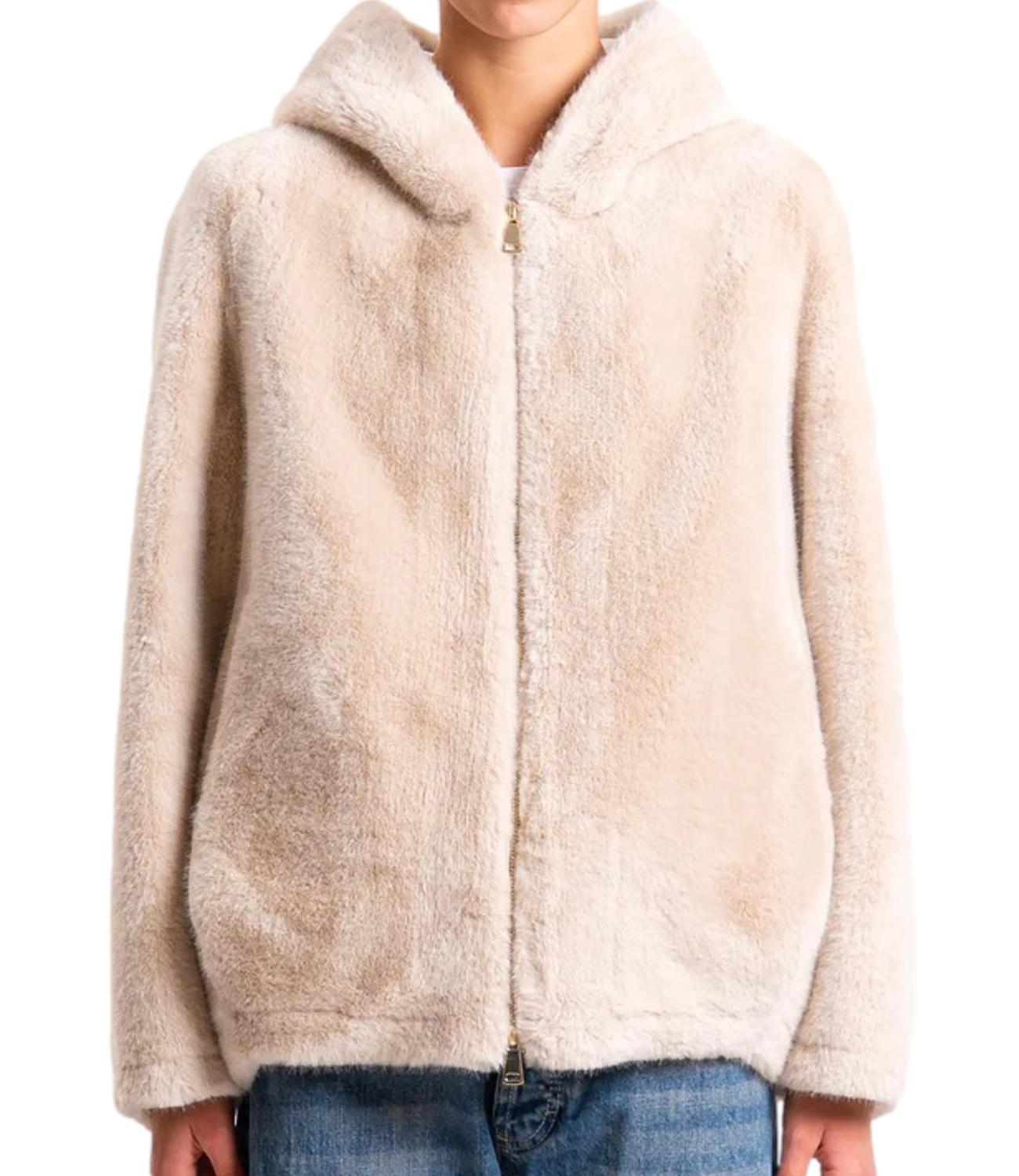 Giubbino in ecopelliccia con cappuccio