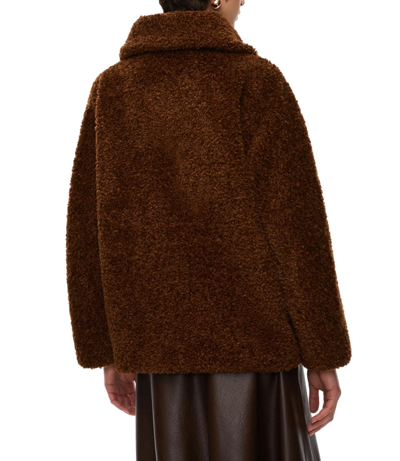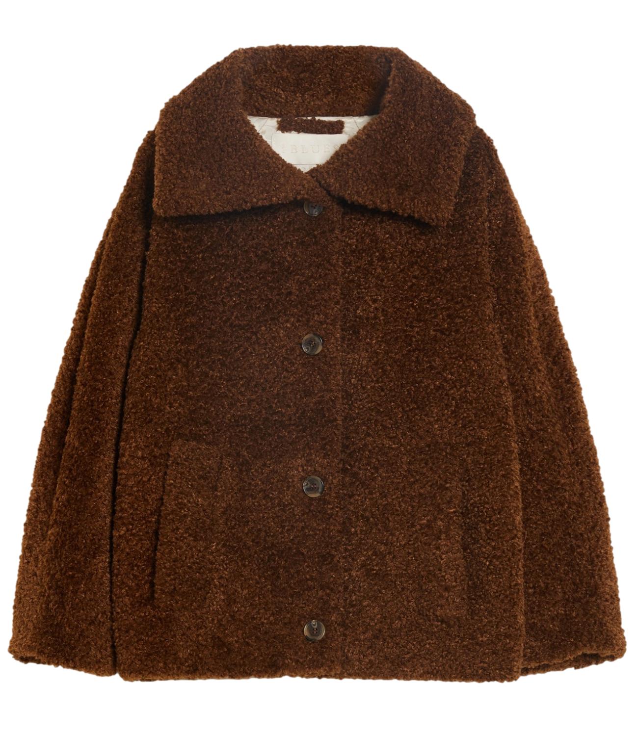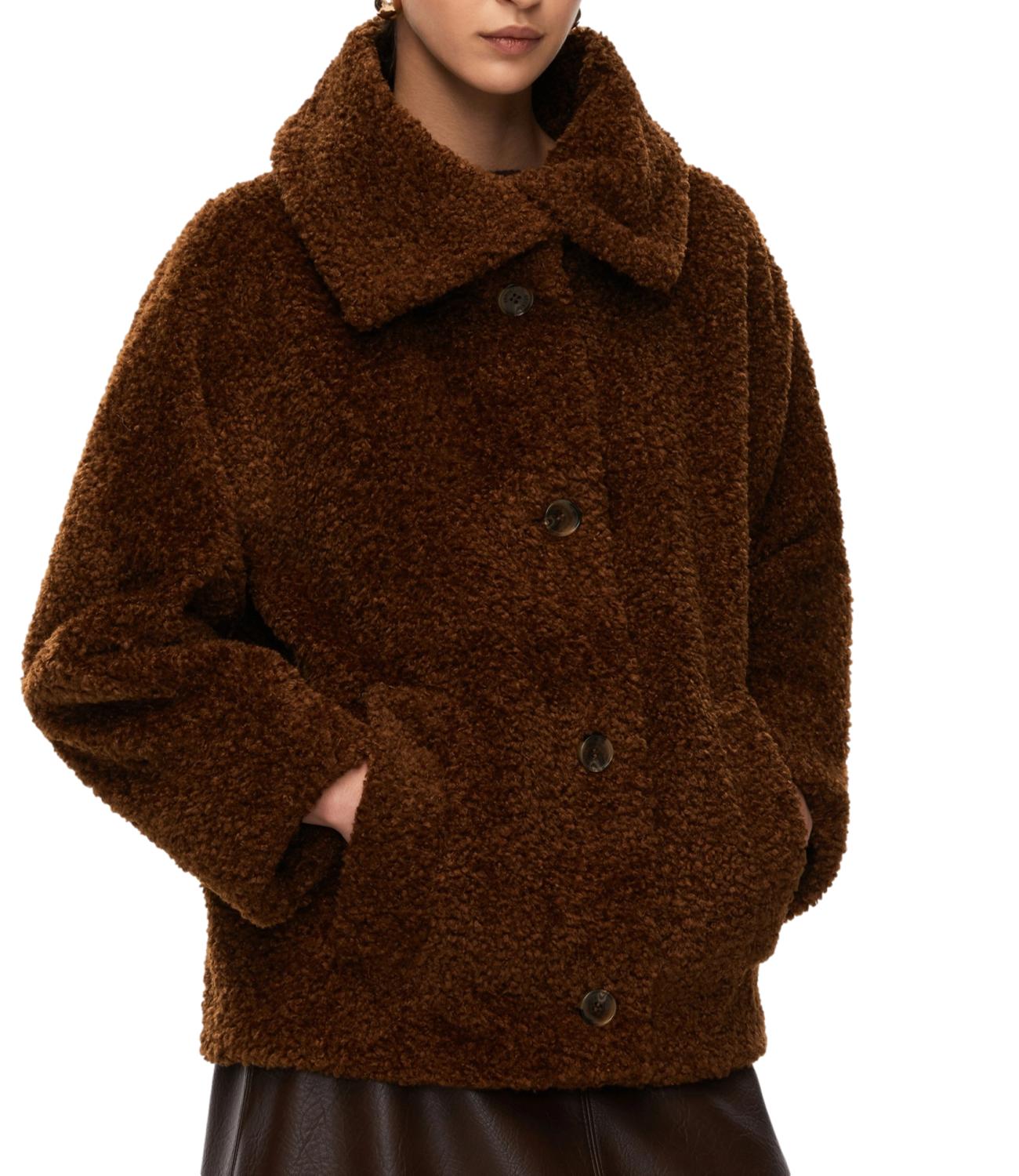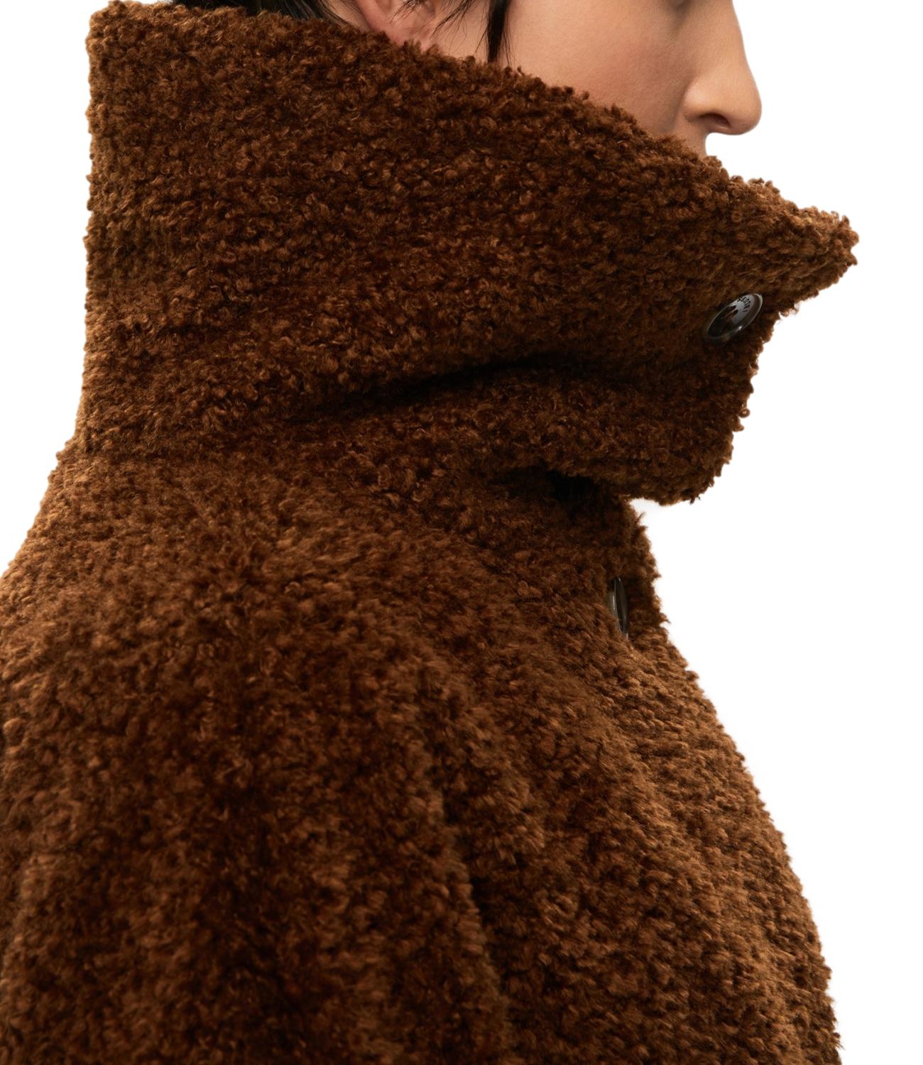 Il collo alto ti protegge dal freddo, il tessuto bouclé dà una nota rétro al tuo look.