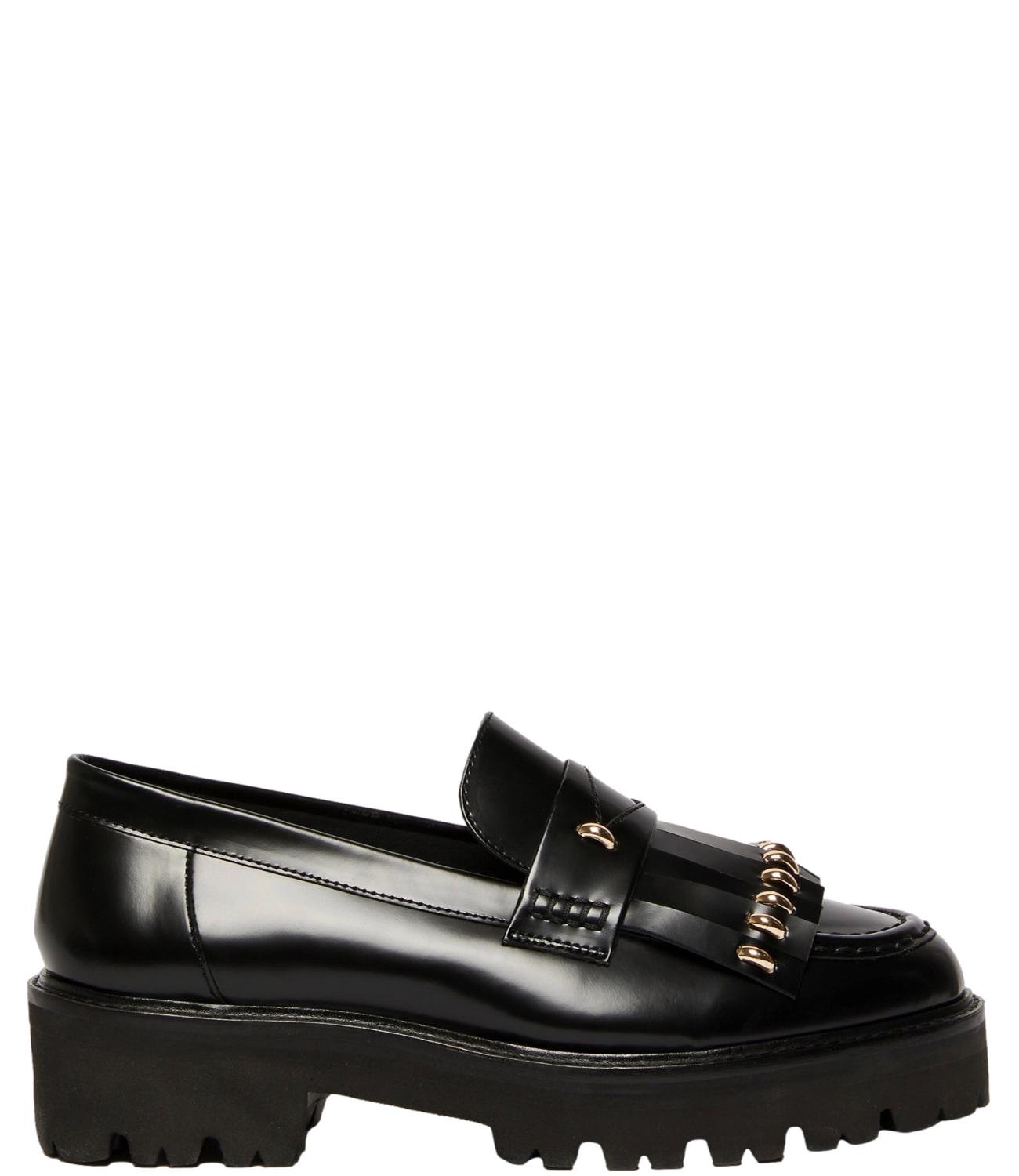 Collegiali di spirito e grintosi d'indole. I mocassini vanno a passo d'uomo, con le linee stondate sulla punta e il tocco scintillante delle micro borchie sulla frangia.