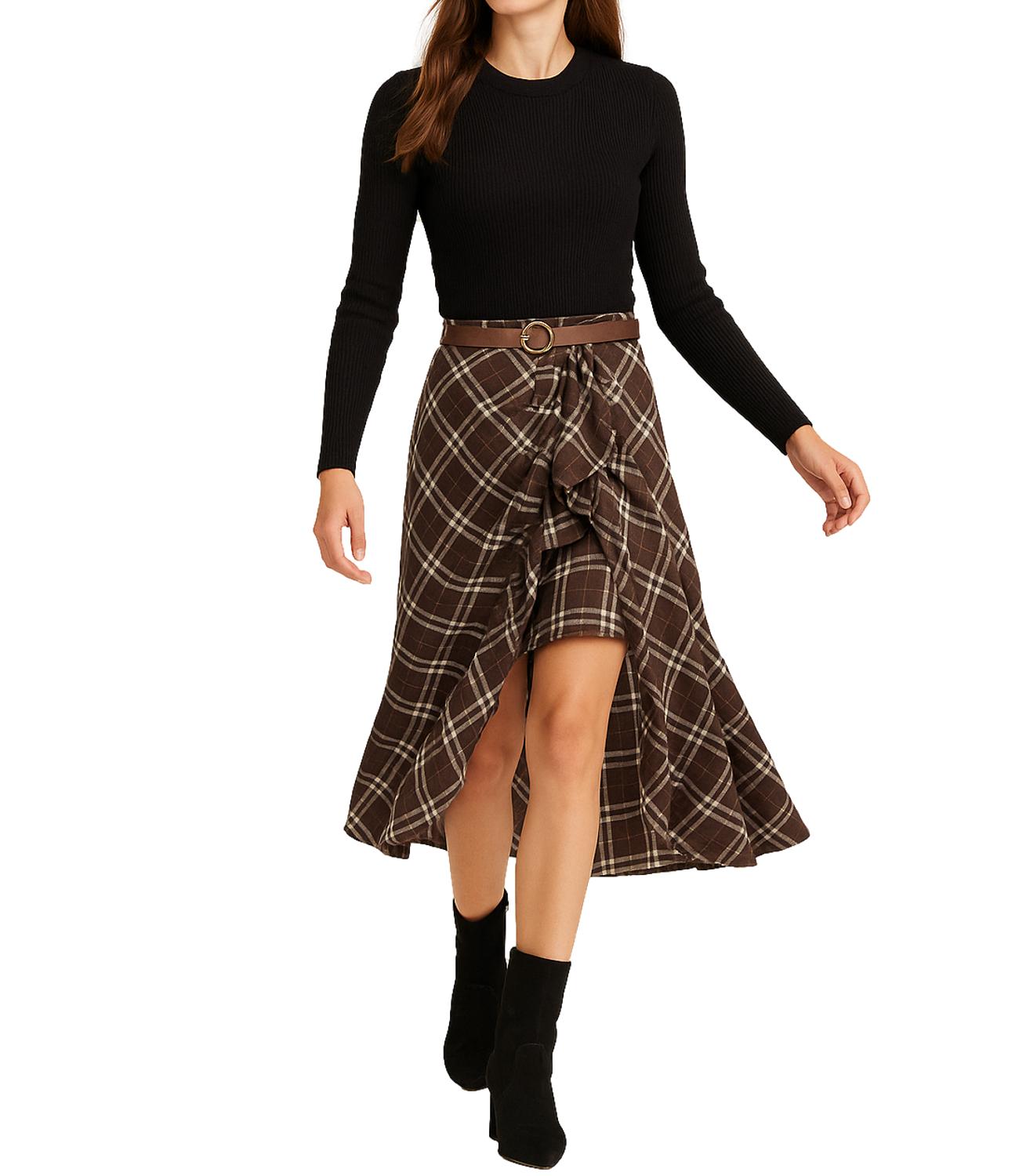 Arricchisci il tuo guardaroba con questa gonna chic e versatile che unisce un'eleganza senza tempo a un tocco moderno. La gonna svasata MOTEL presenta un grazioso motivo a quadri in flanella nei toni del marrone e del grigio, perfetto per creare look eleganti e disinvolti.