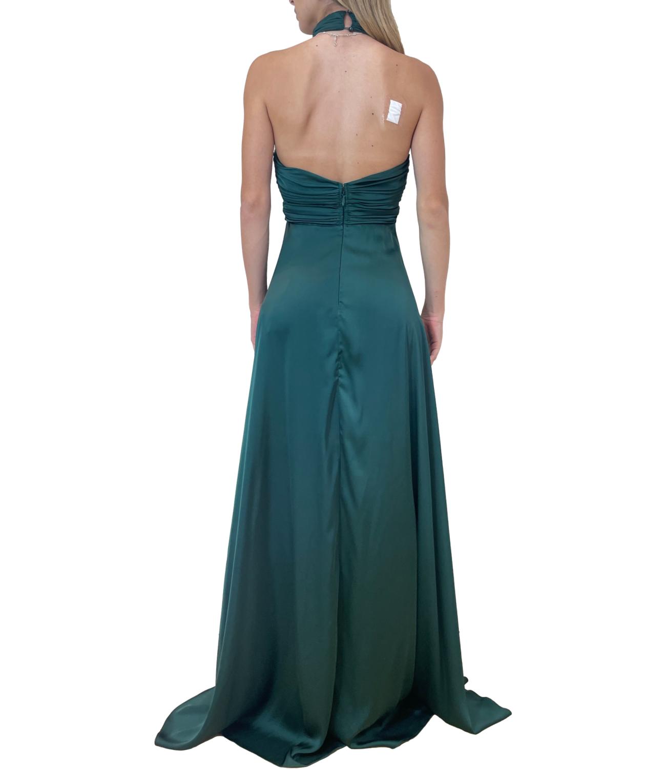Nadine abito Oliva/125 in raso lungo da cerimonia con scollo all'americana